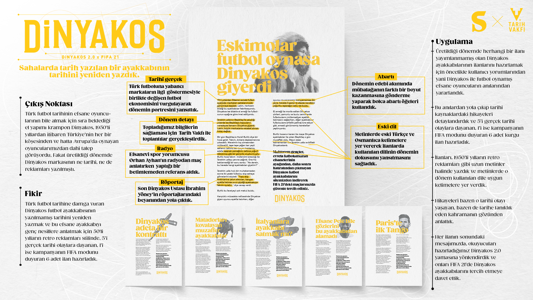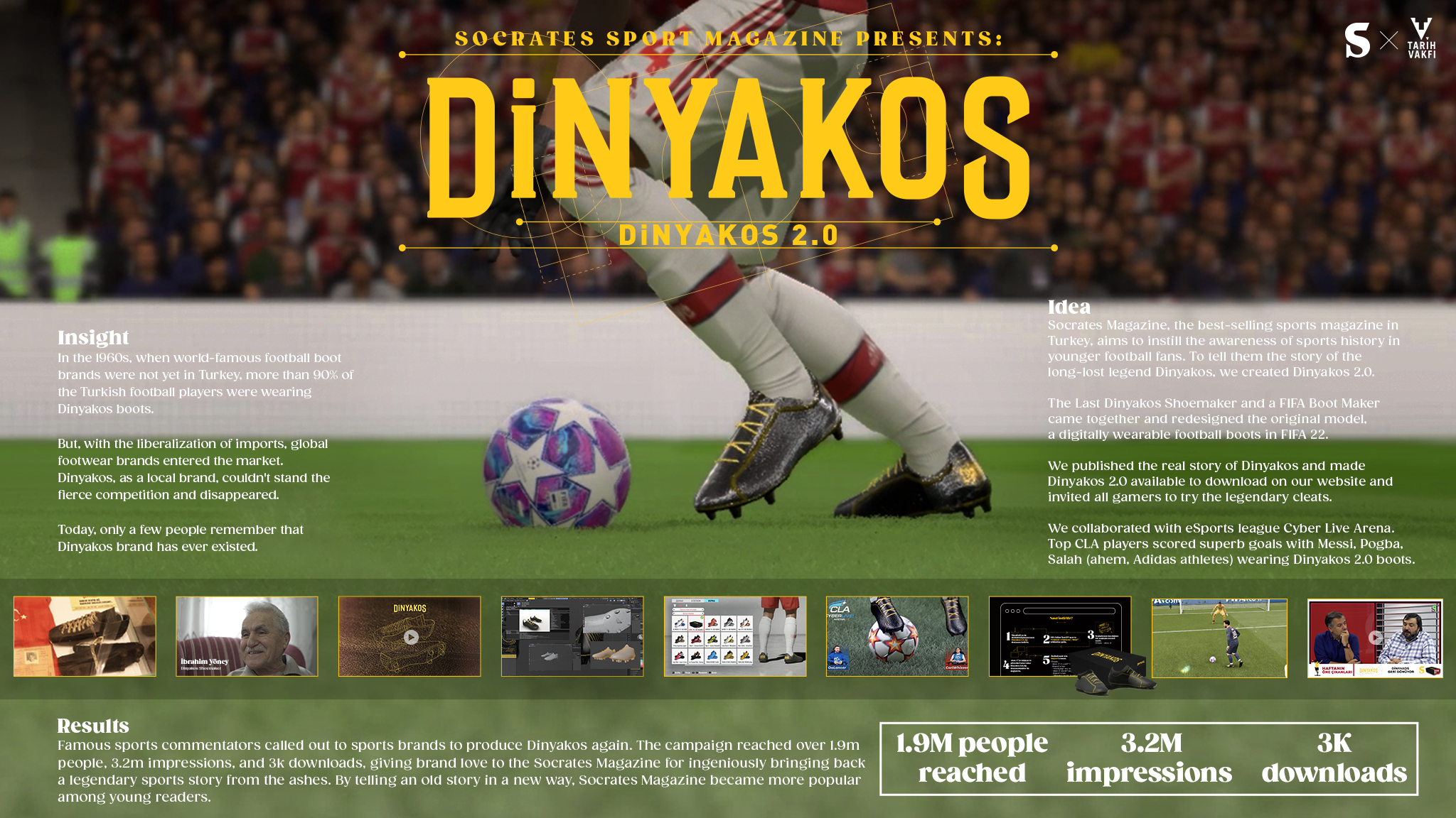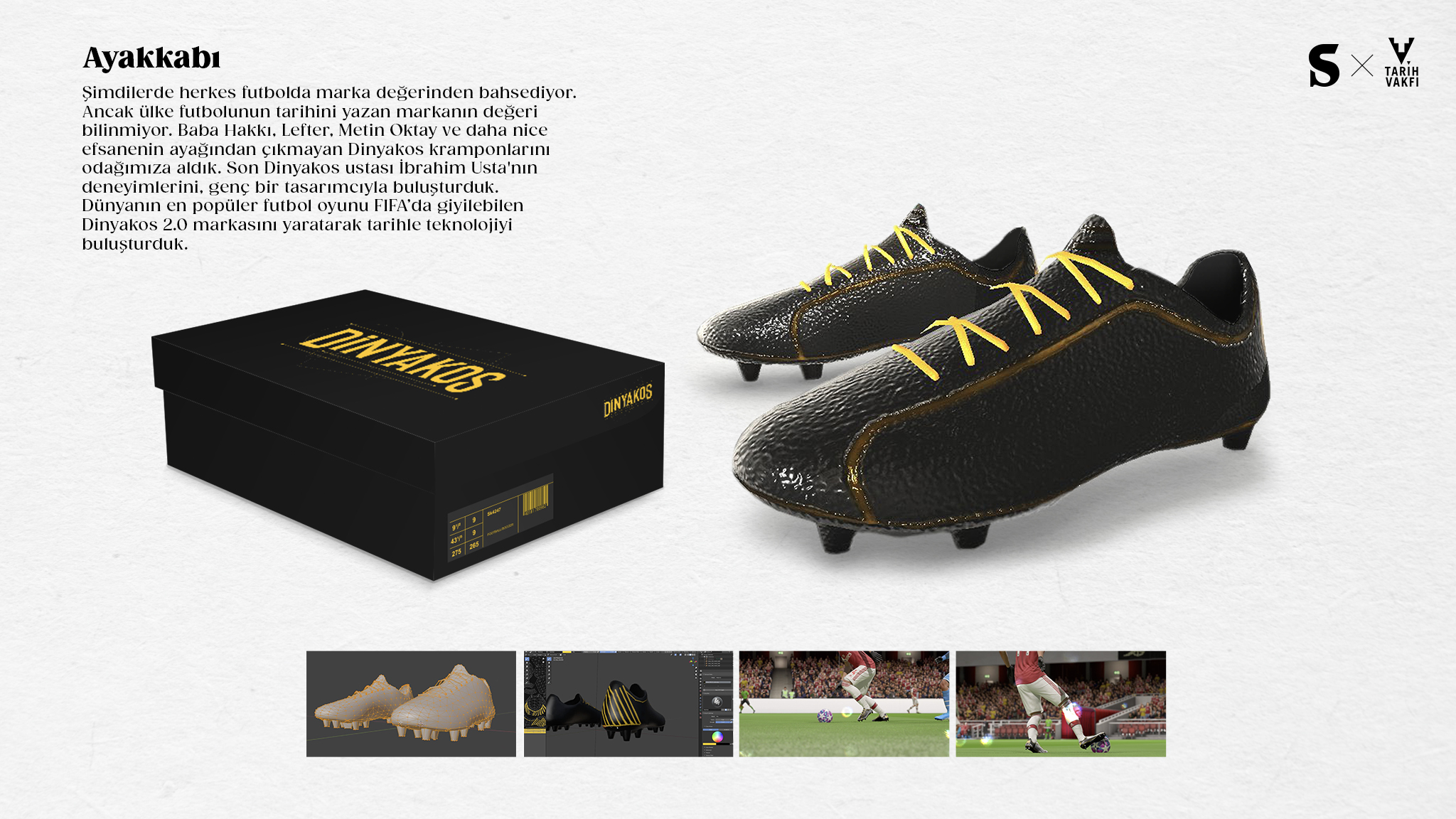 In the 1960s, when world-famous football boot brands were not yet in Turkey, more than 90% of the Turkish football players wore a local brand, Dinyakos boots. With the liberalization of imports, global footwear brands entered the market in the following years. Dinyakos couldn’t stand the fierce competition and disappeared. Fifty years later, we recreated Dinyakos in World’s most famous football game, Fifa 2022…