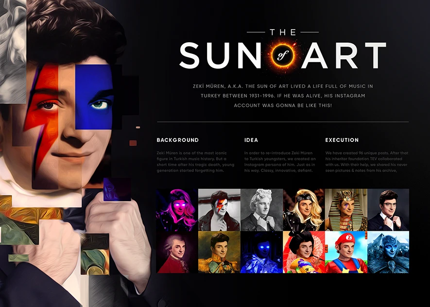 In order to introduce Turkish Bowie Zeki Müren to youngsters, we created an Instagram persona of him with real historical documents. You can visit Instagram account by clicking here.