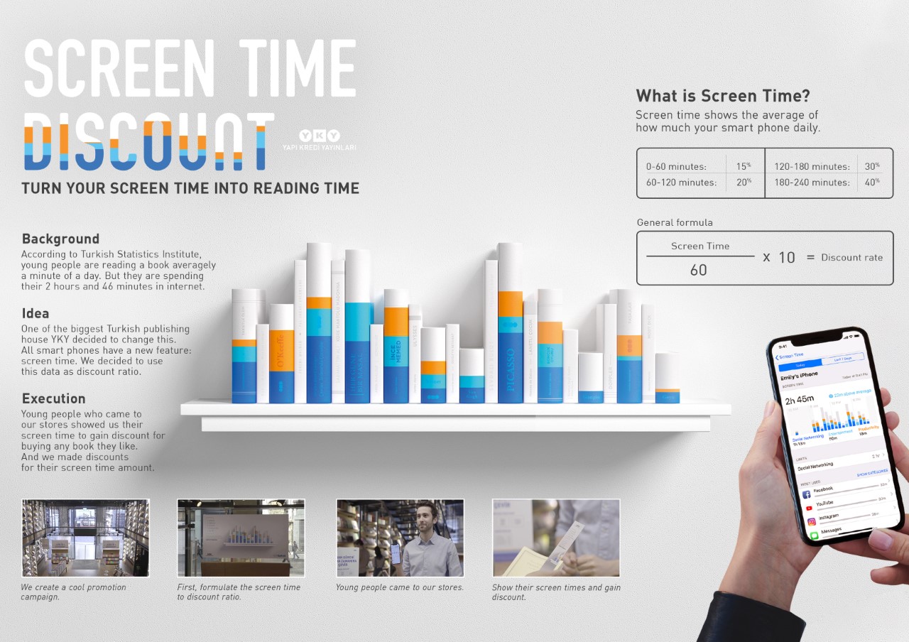 Young people spend more and more time on the internet. A new mobile application is entering their lives daily, and they spend all their time unlimitedly. A new feature showed the time spent on smartphones, and this inspired us to keep this time under control. So we decided to create a campaign with this smartphone feature that would reach young people and encourage them to read books.