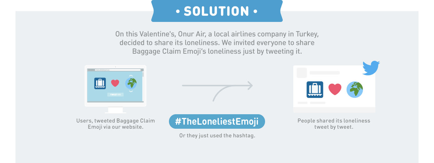 least used emoji in the World. So, on Valentine’s Day, Onur Air, a local airlines company in Turkey, decided to share this Emoji’s loneliness just by Tweeting it.